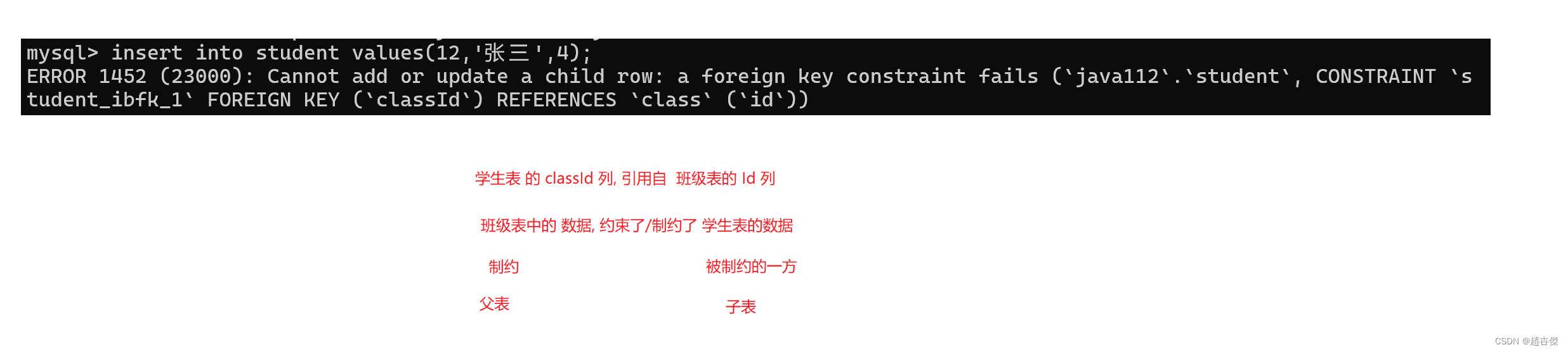 如果父表中的某个记录,被子表引用了,此时就不能删除/修改父表中的对应记录了.
