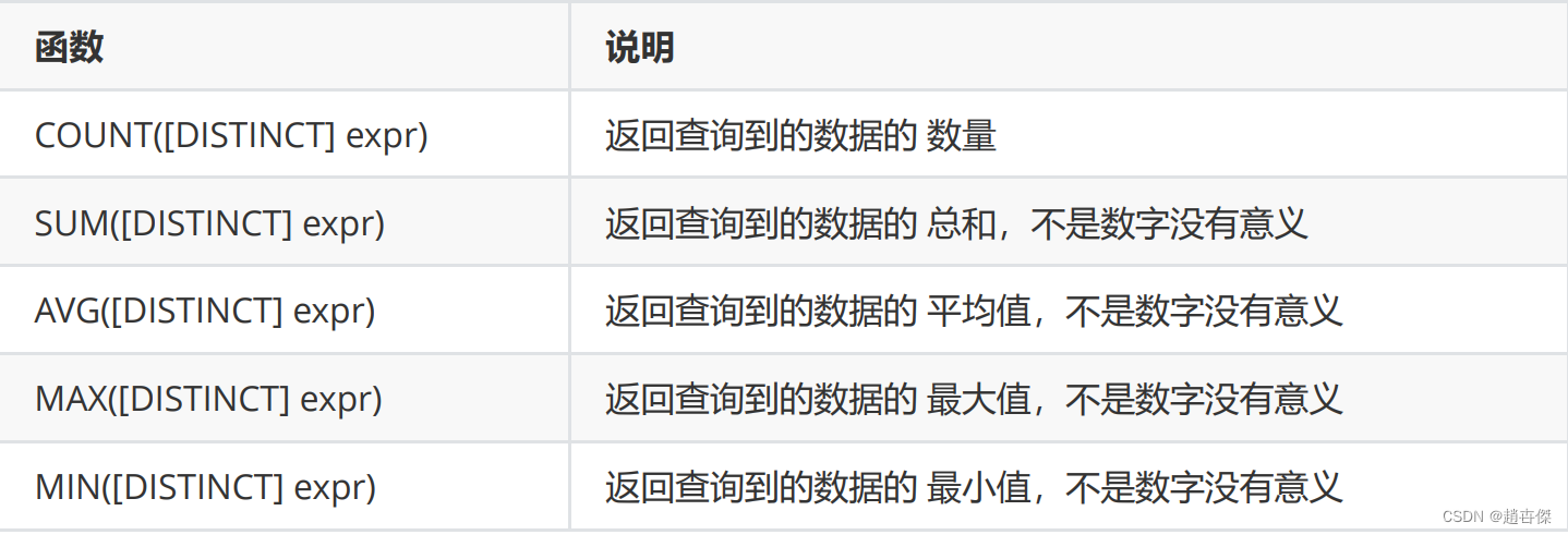 AVG([DISTINCT] expr) 返回查询到的数据的 平均值,不是数字没有意义