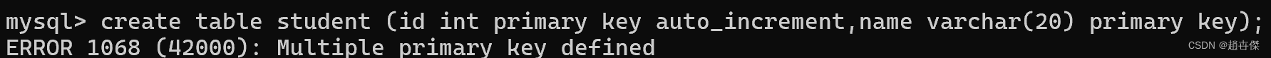 注意:不允许一个表中存在多个主键(多个身份标识)