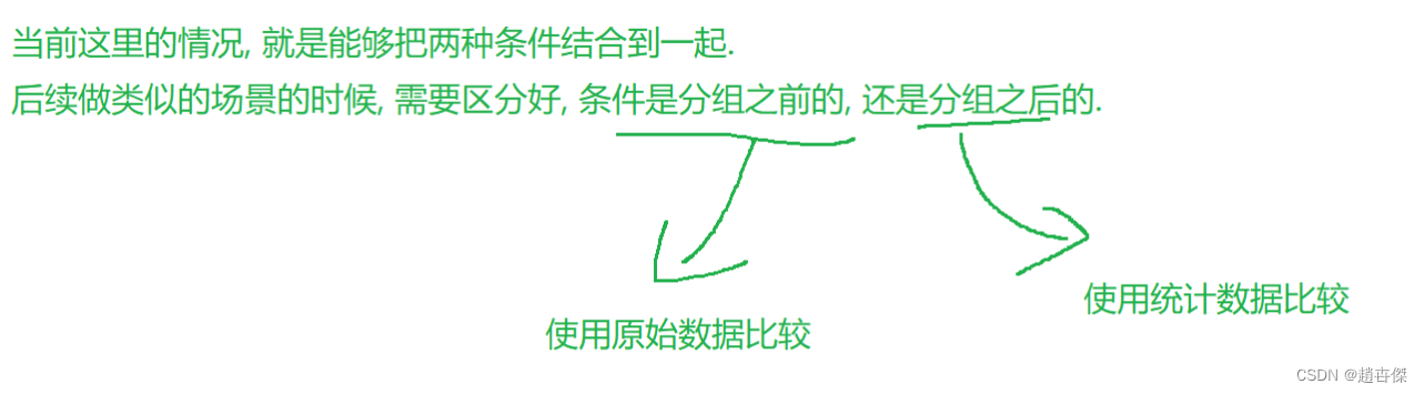 GROUP BY 子句进行分组以后,需要对分组结果再进行条件过滤时,不能使用 WHERE 语句,而需要用 HAVING