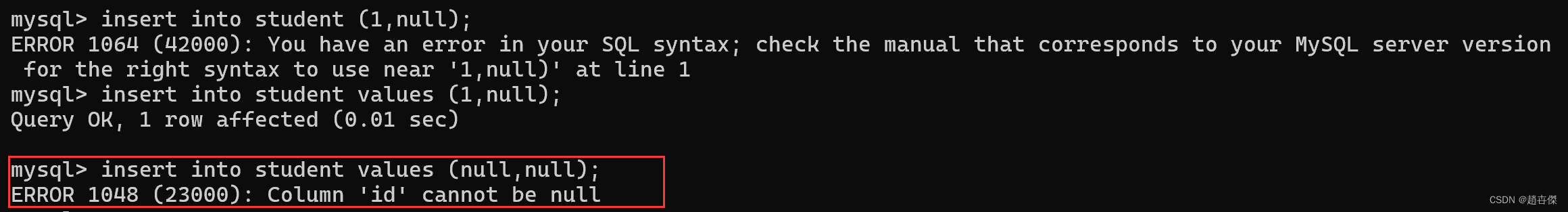 PRIMARY KEY:主键约束 约定了这个表里的某一列为"身份标识":非空和唯一。