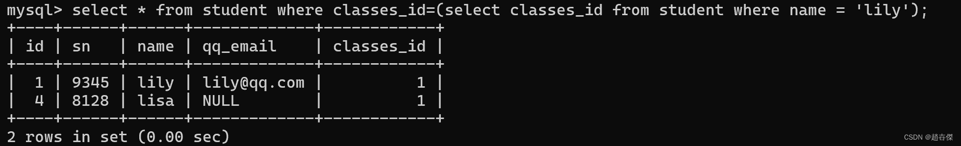 select * from student where classes_id=(select classes_id from student where name = 'lily');
