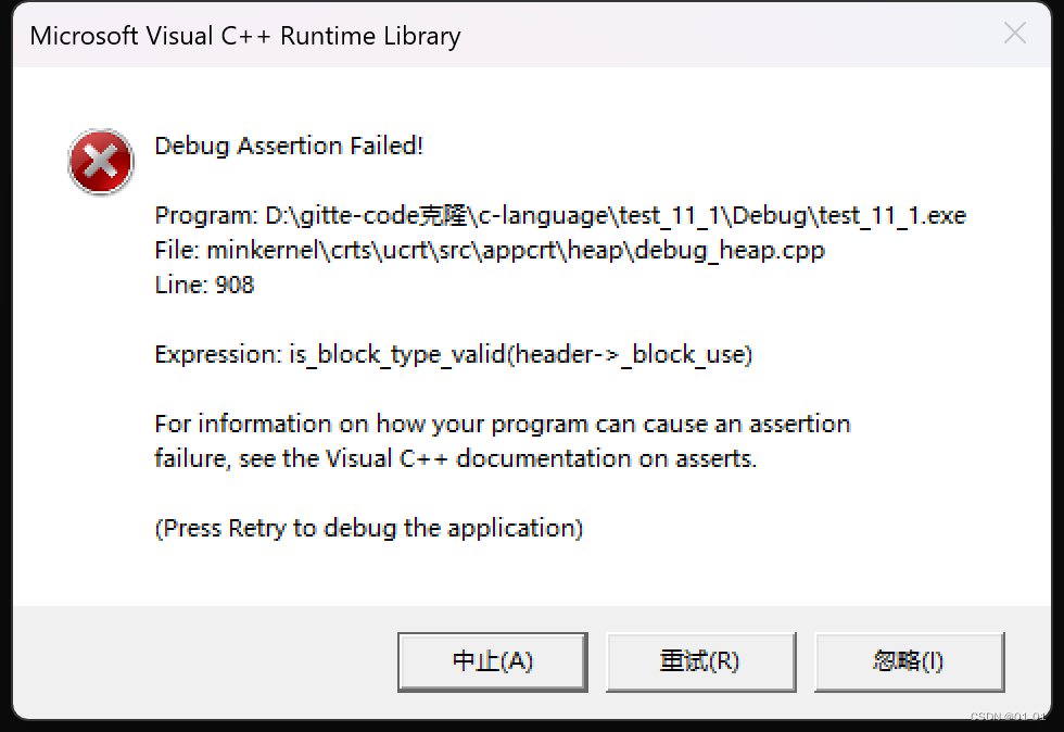 }注意:同一块内存空间只能释放一次