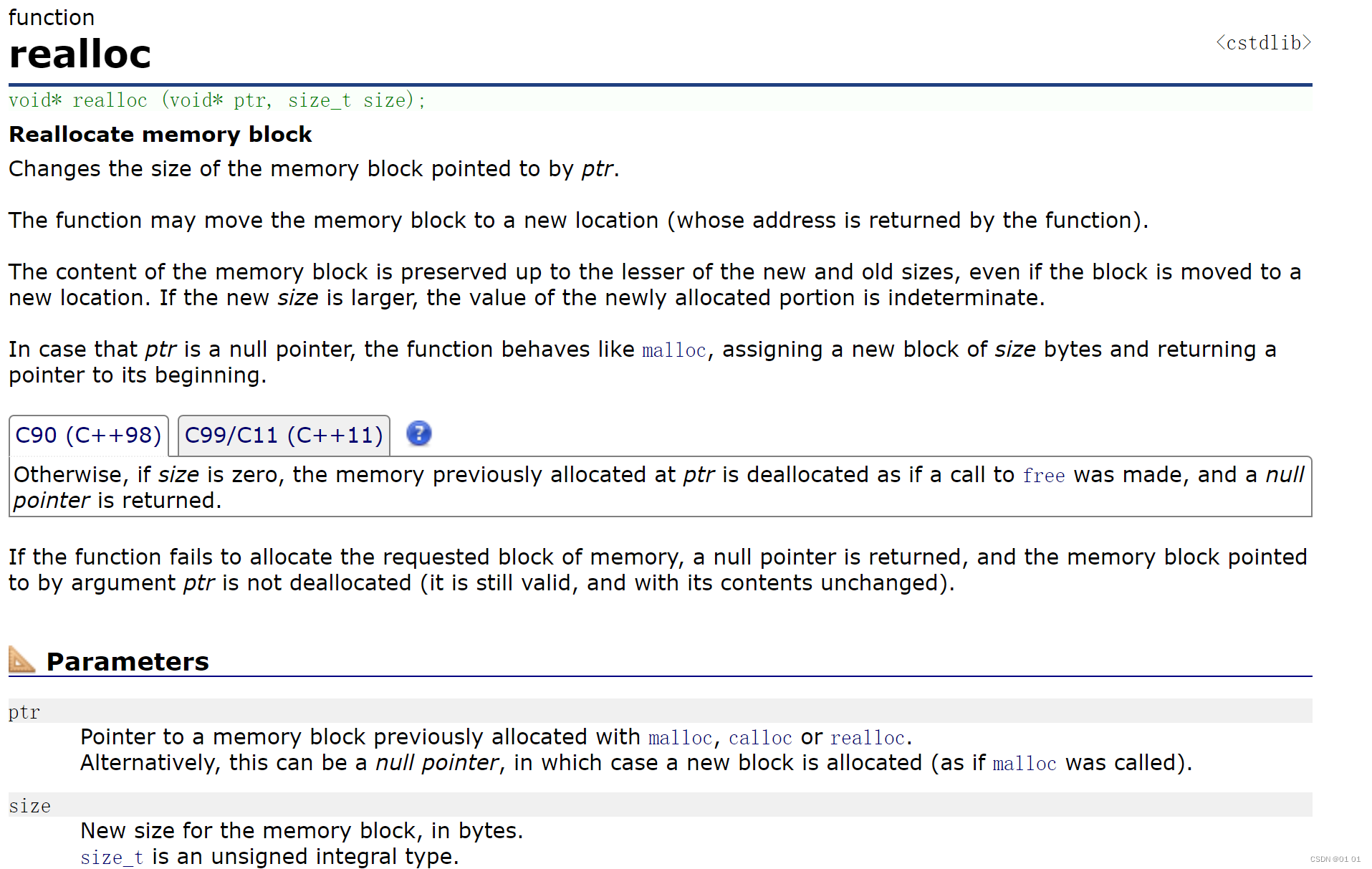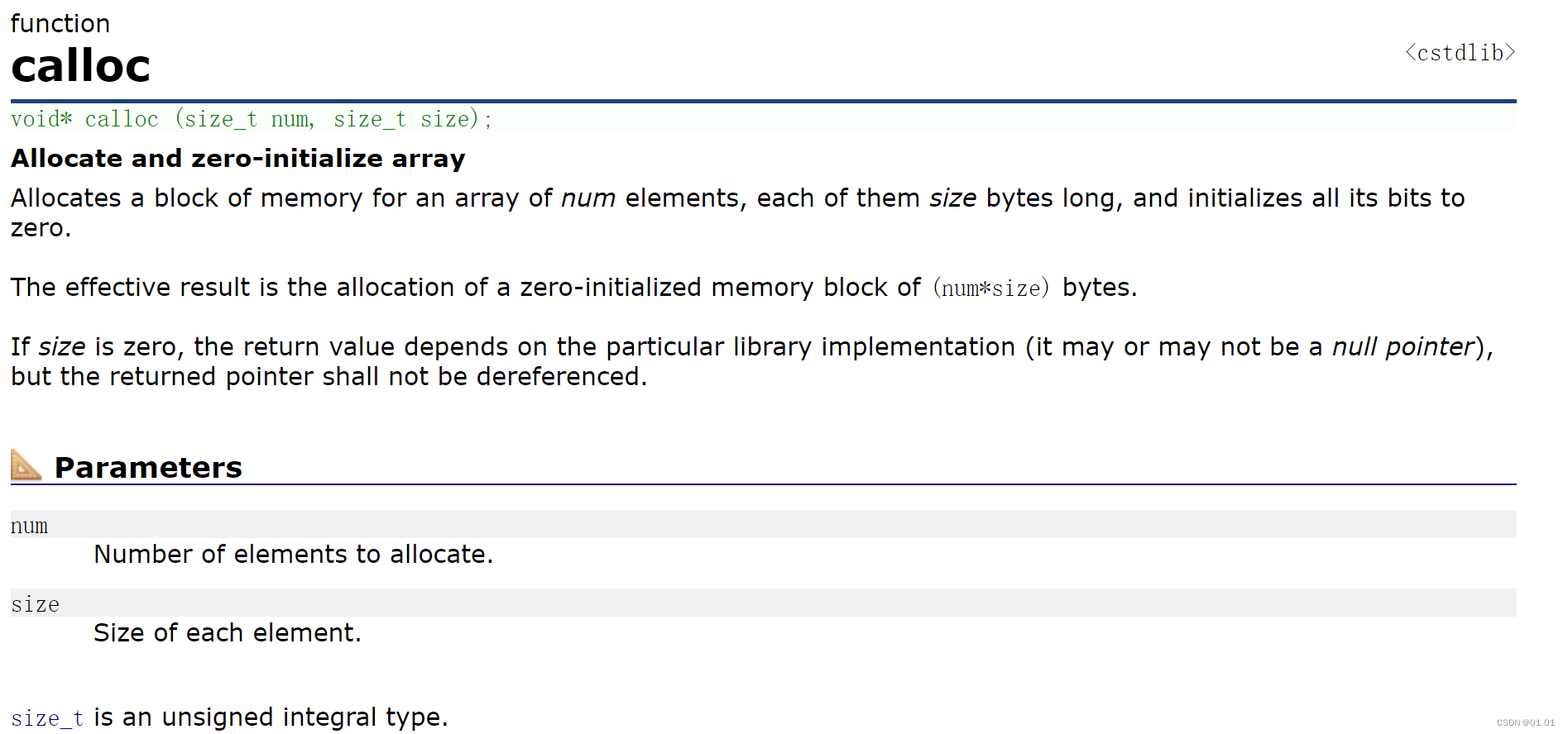 • 与函数 malloc 的区别只在于 calloc 会在返回地址之前把申请的空间的每个字节初始化为全