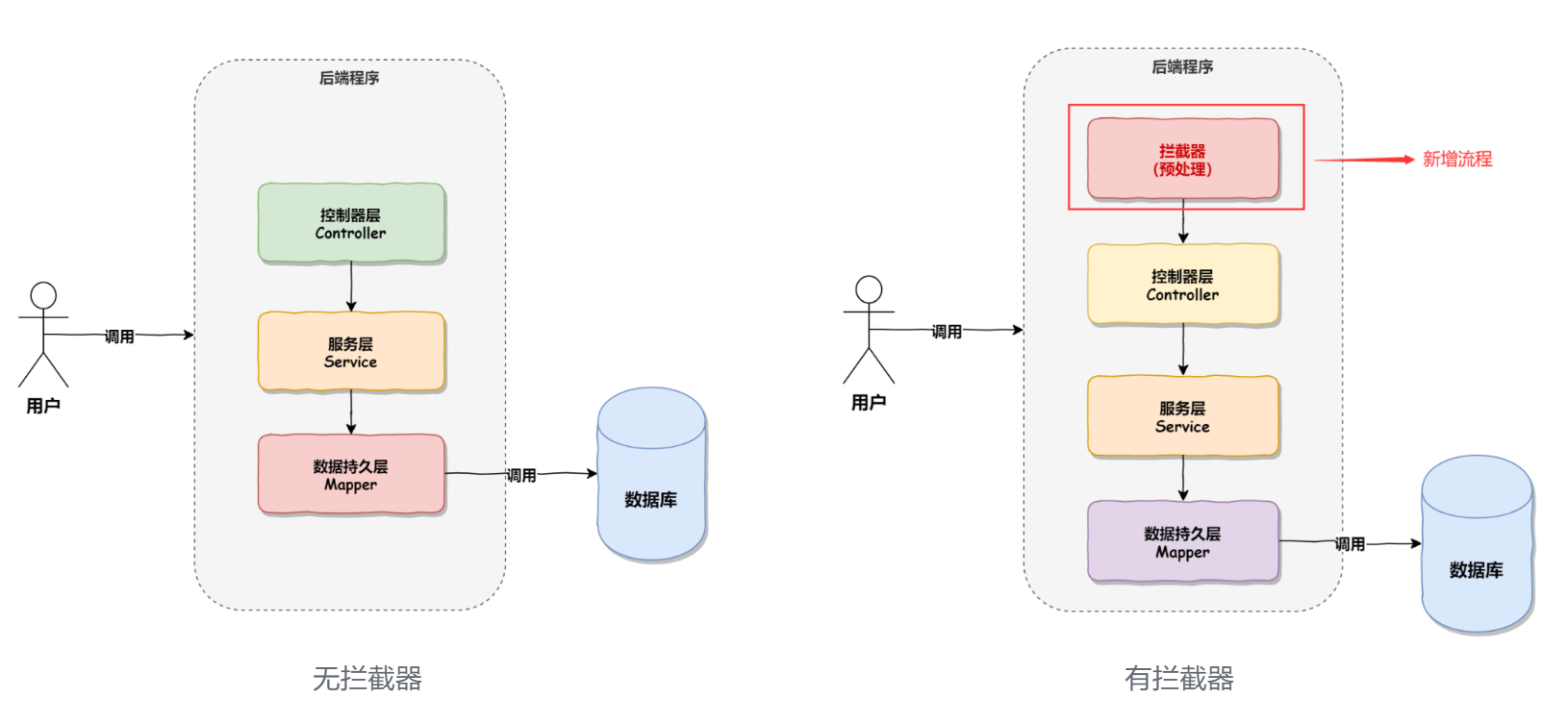 也就是说,允许开发人员提前预定义一些逻辑,在用户的请求响应前后执行,也可以在用户请求前阻止 其执行. 在拦截器当中,开发人员可以在应用程序中做一些通用性的操作,比如通过拦截器来拦截前端发来的 请求,判断Session中是否有登录用户的信息,如果有就可以放行,如果没有就进行拦截