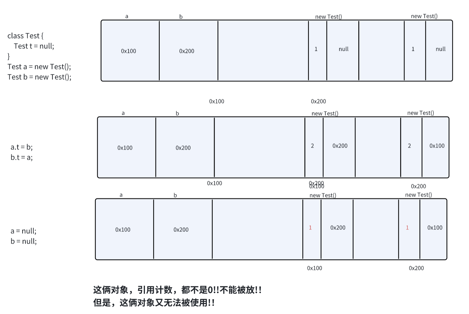 Java采用的方案 用时间来换空间 再JVM中专门高了一波周期性的线程来扫描代码中所有的对象,判断某个对象是否是"可达"(可以被访问到),对应的不可达的对象就是垃圾了