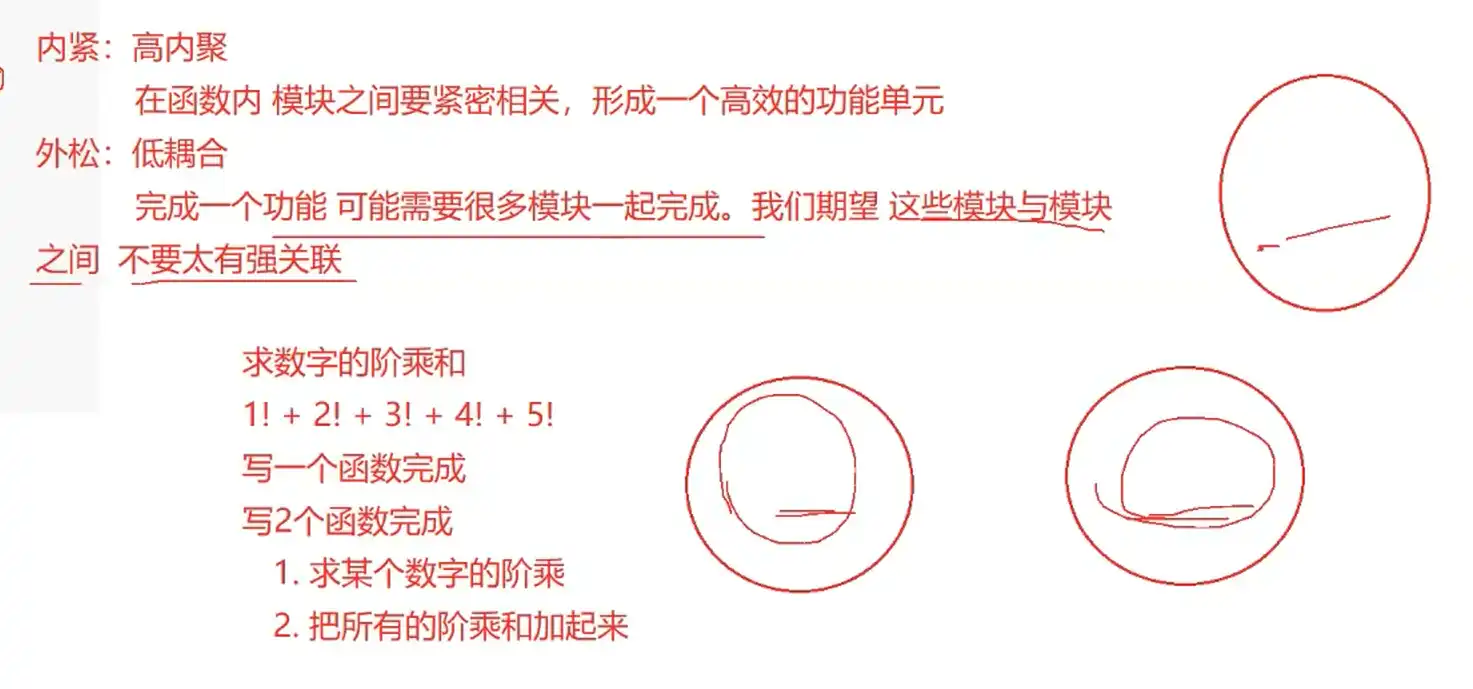 高内聚: 自己做功能独立、干净 低耦合: 函数不要有太多的功能,既要有要 反例(不方便其他函数调用):函数不够独立