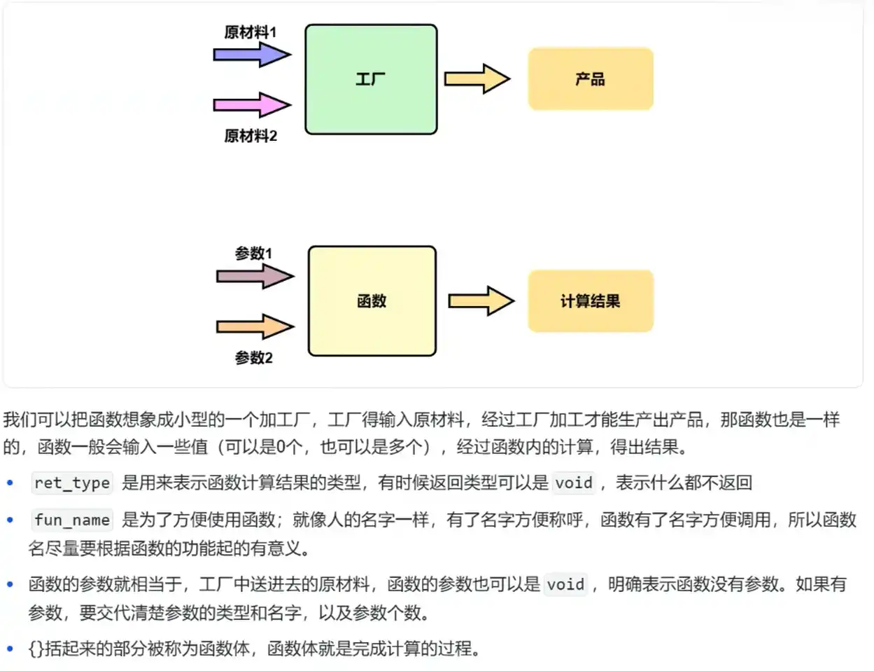==注意点:==当形参为void,就明确实参不能传参数,当形参里面的参数不写,传参数没关系(最好不要传参数)