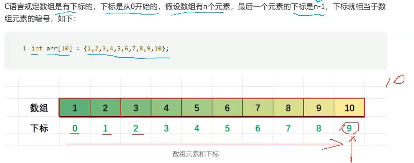 一维数组存放数据就是对数据进行操作的,使用下标(类似于编号)来操作
