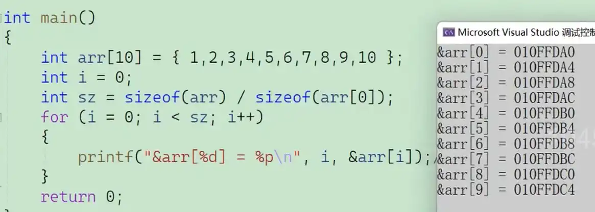 由图可以看出数组的存储方式是连续存放的