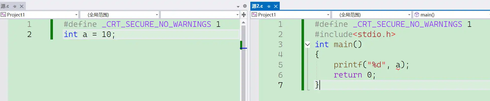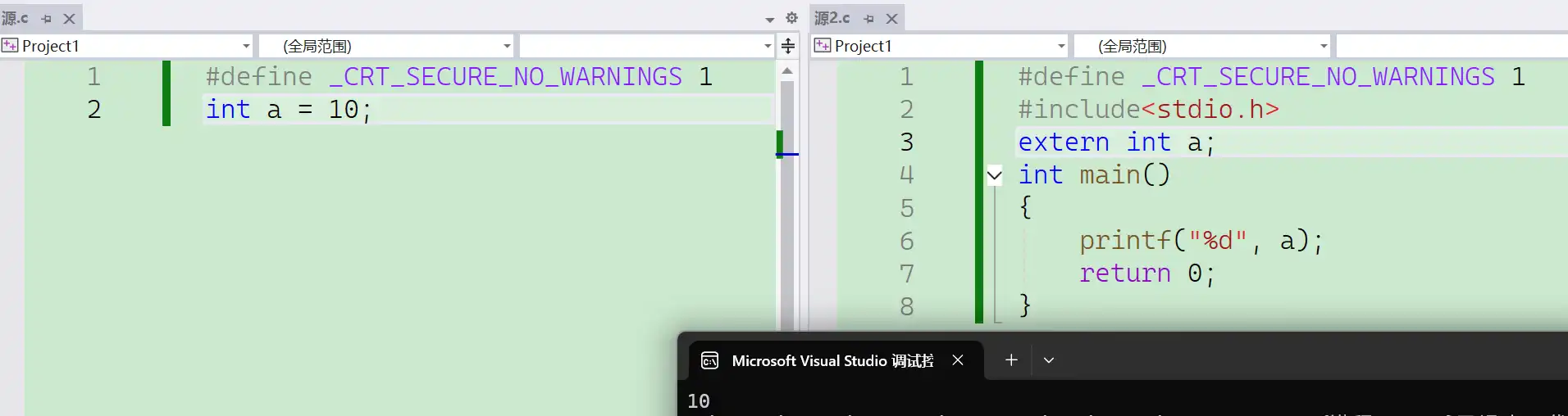 变量跨文件使用方法,满足全局变量的是整个工程(项目),前提要声明才能使用
