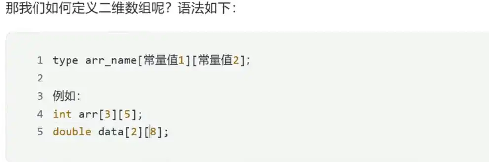 二维数组中每一行可以理解为一维数组,每一行一维数组名为arr[],从这里可以得到,为啥初始化时可以省略行,不能省略列,因为行取决于内容,不知道列有几个元素,每一行不知道从哪里开始放(比如:第二行放到第一行的后面)