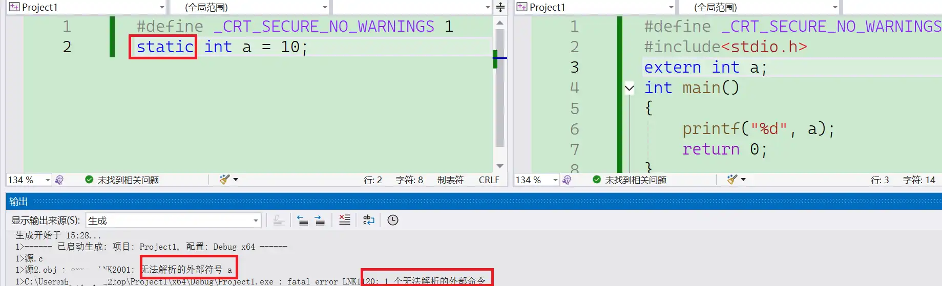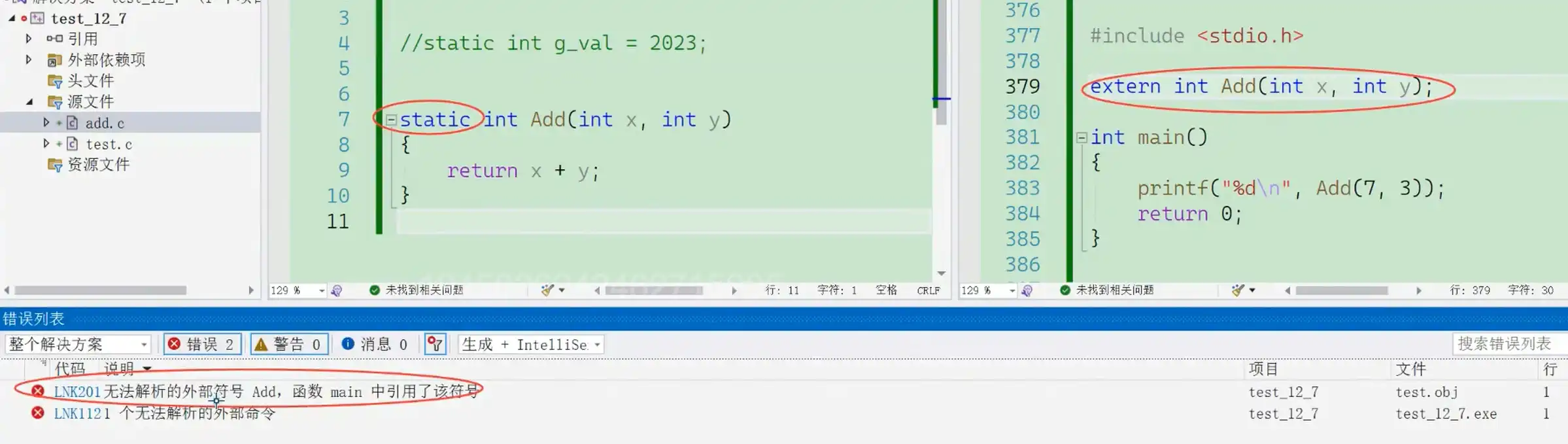 解决办法:extern专门用来声明外部符号的(其他文件的符号)