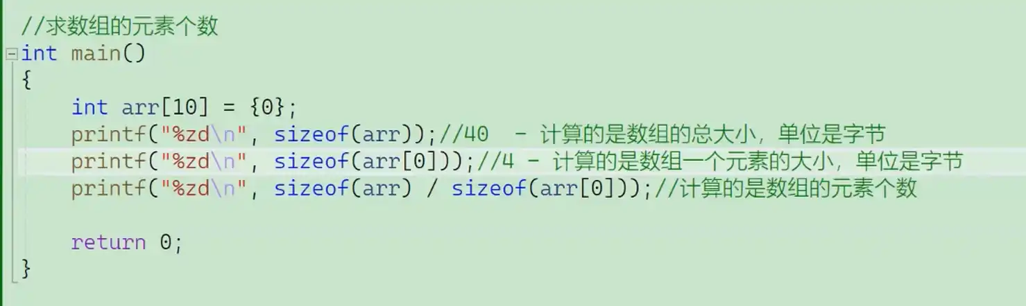 int sz = sizeof(arr) / sizeof(arr[0]);