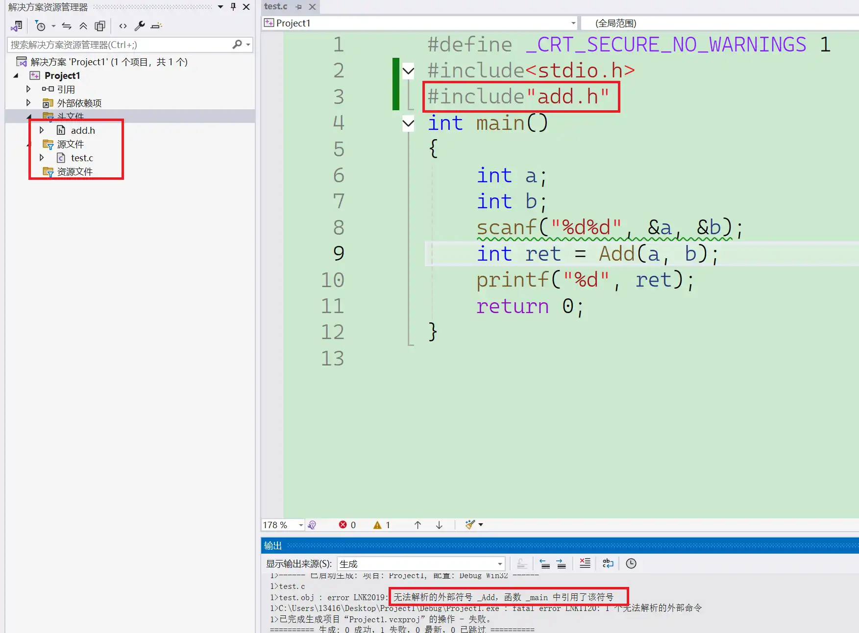添加到项目中,引用头文件,运行,但是有报错