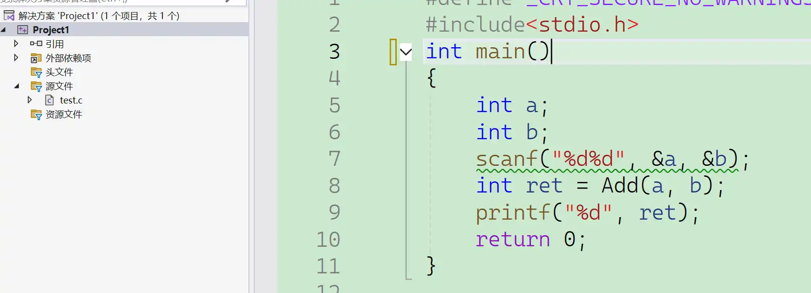 int ret = Add(a, b);