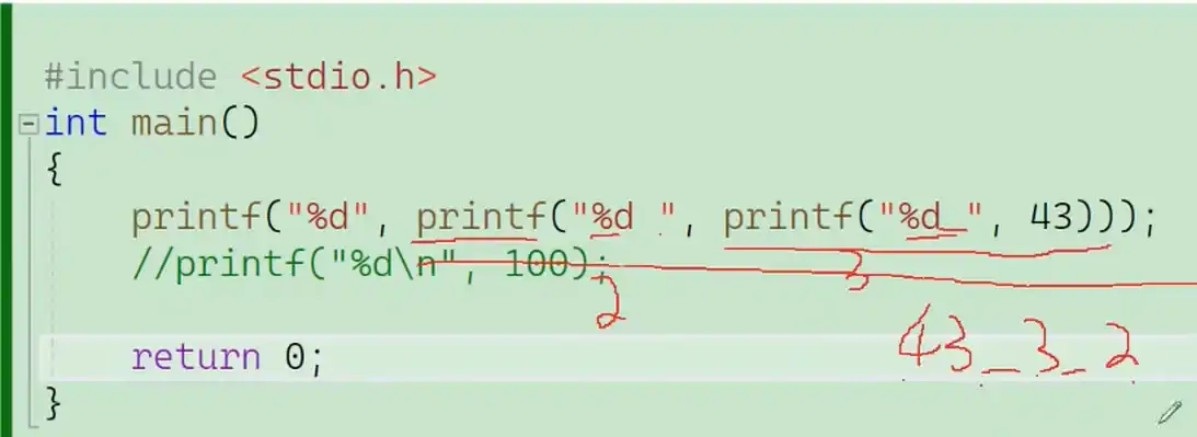 printf("%d", printf("%d", printf("%d", 43)));