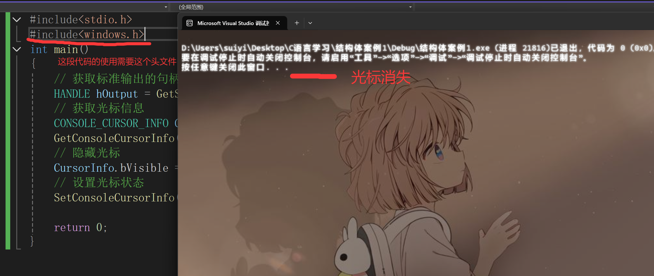 CursorInfo.bVisible = false; // 隐藏控制台光标