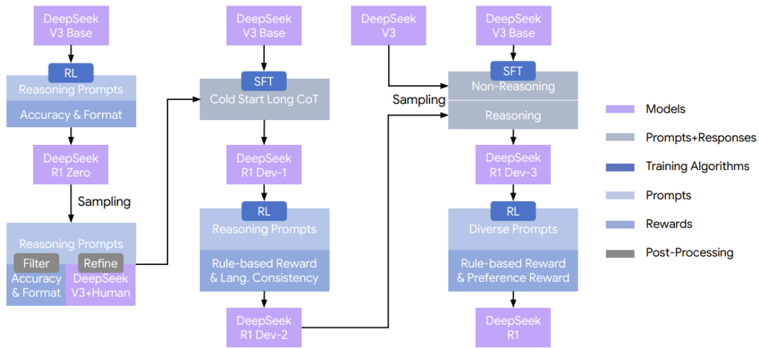 DeepSeek-R1 的多阶段训练流程,来自 arXiv:2501.12948v2