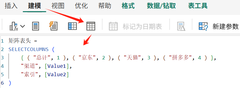 首先,建模选项卡下新建DAX表: