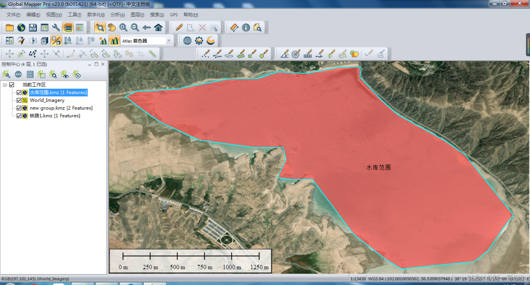 面状数据采集也是同理,不再赘述。如采集的金川峡水库的大致范围如下所示: