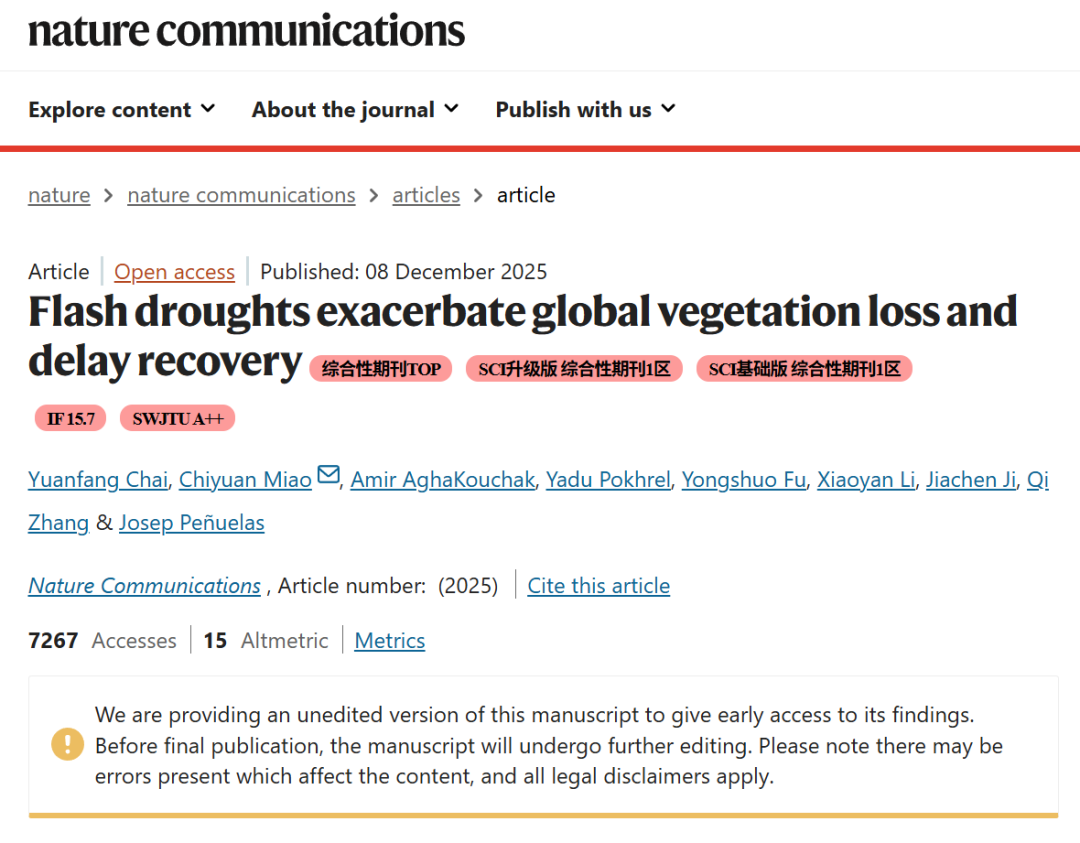 本研究首次系统量化了骤发干旱对全球植被的差异化影响,为气候适应策略提供关键依据: