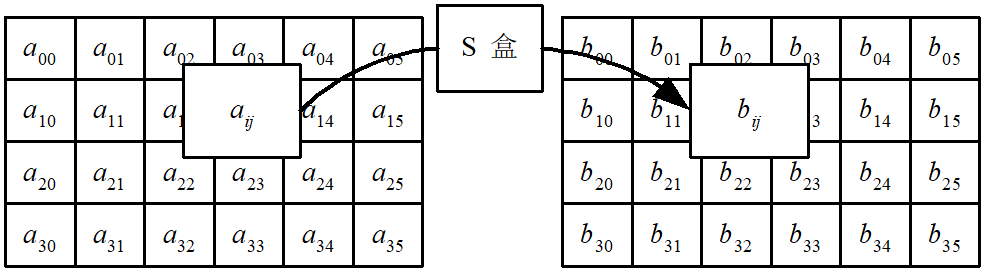 目的:使用一个固定的 S 盒对每个字节进行非线性替换,增强加密的混淆性。