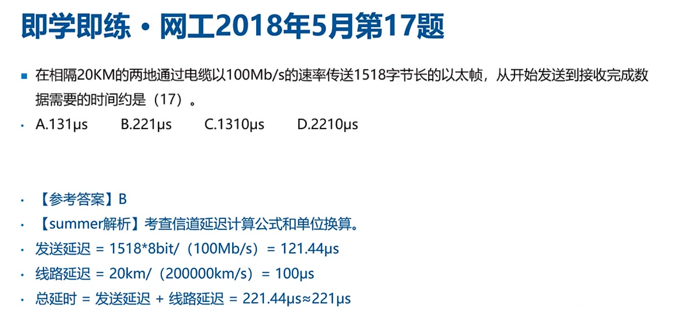 信道延迟 | 信道延迟=线路延迟+发送延迟 | 信道延迟的计算公式 | 中 |
