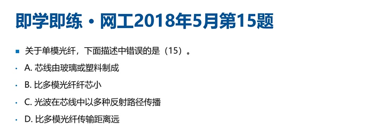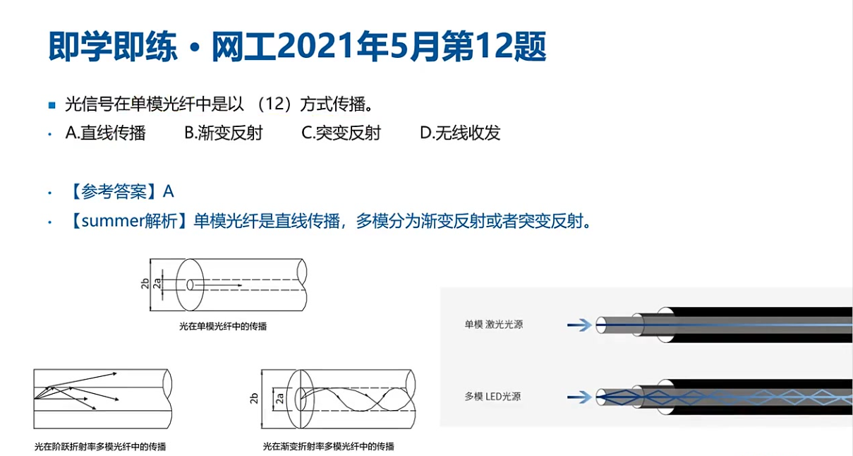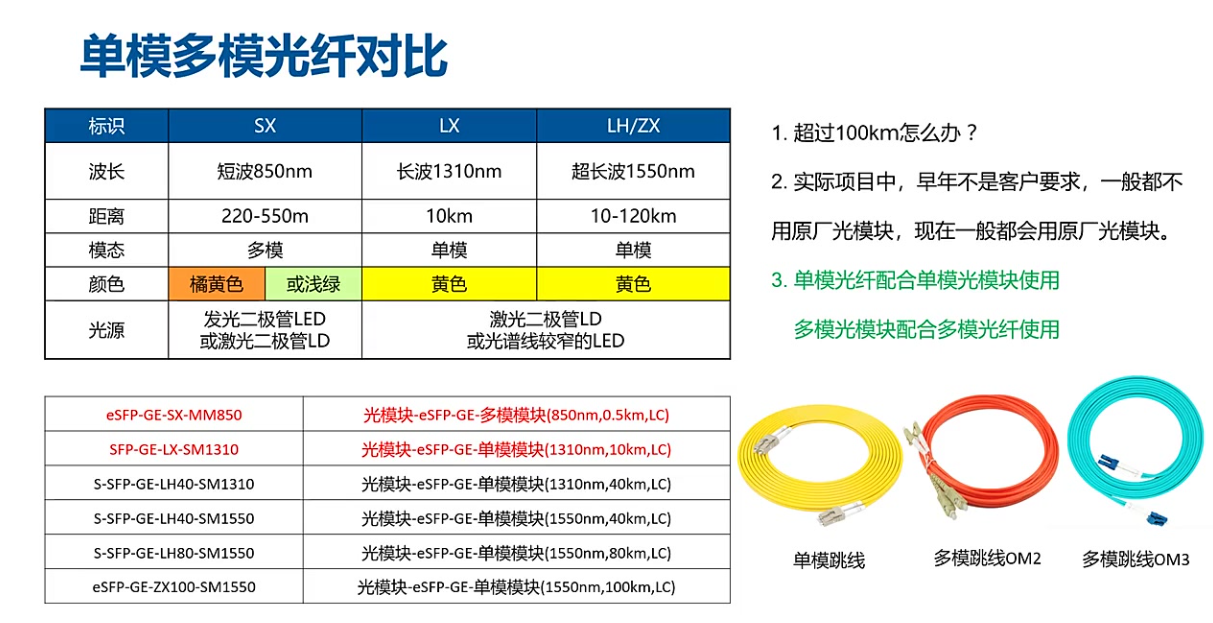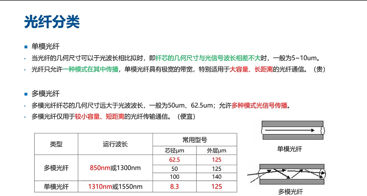 光纤分类 | 单模与多模光纤 | 单模与多模传输距离、光源类型 | 高 |
