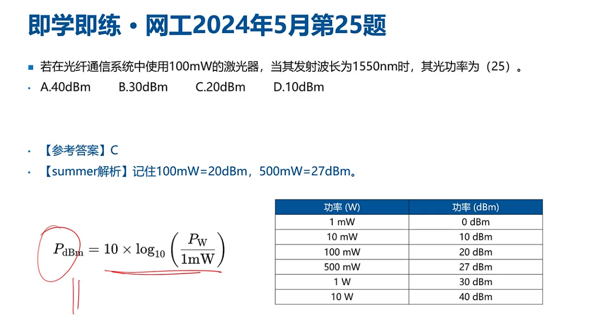 光功率单位 | 毫瓦与dBm转换 | 常见光功率值记忆 | 中 |