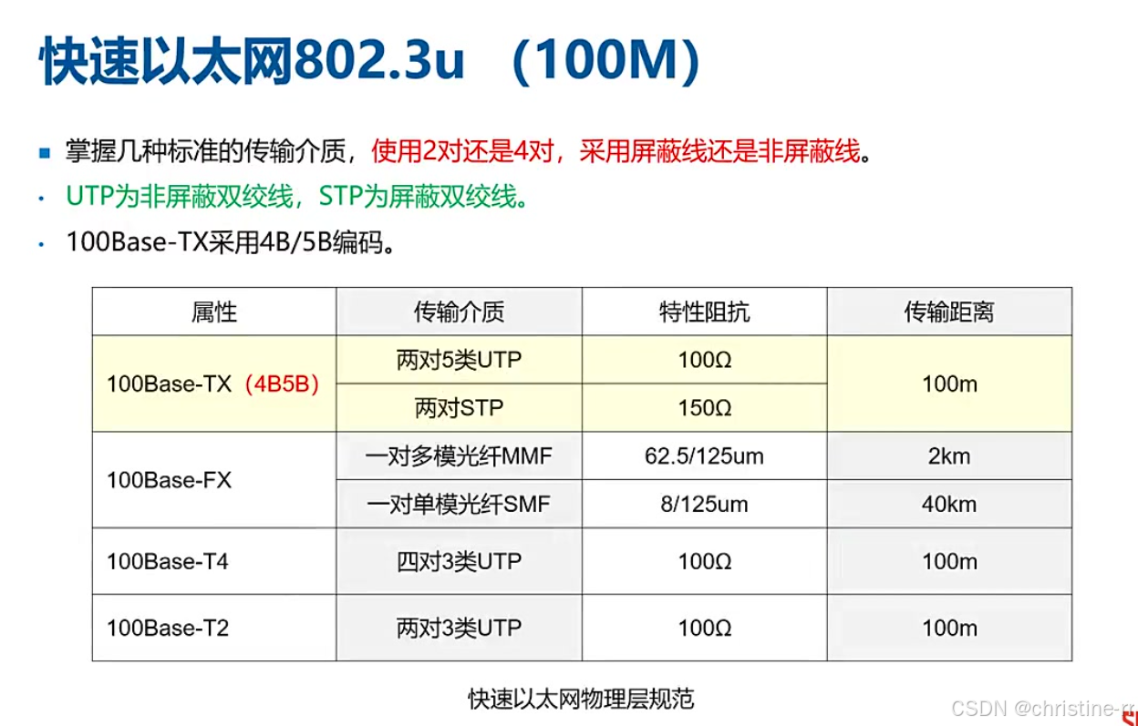 编码方式: 100Base-TX采用4B/5B编码 传输距离: