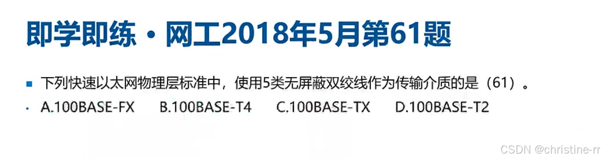 物理介质命名 | 100Base-T为例:100表示速率,Base表示基带传输,T表示双绞线 | 命名规则中各部分的含义 | 🌟🌟🌟 |