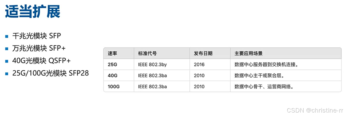 25G/40G/100G标准 | 25G标准802.3by,40G/100G标准802.3ba | 高容量接口的标准 | 🌟🌟🌟 |
