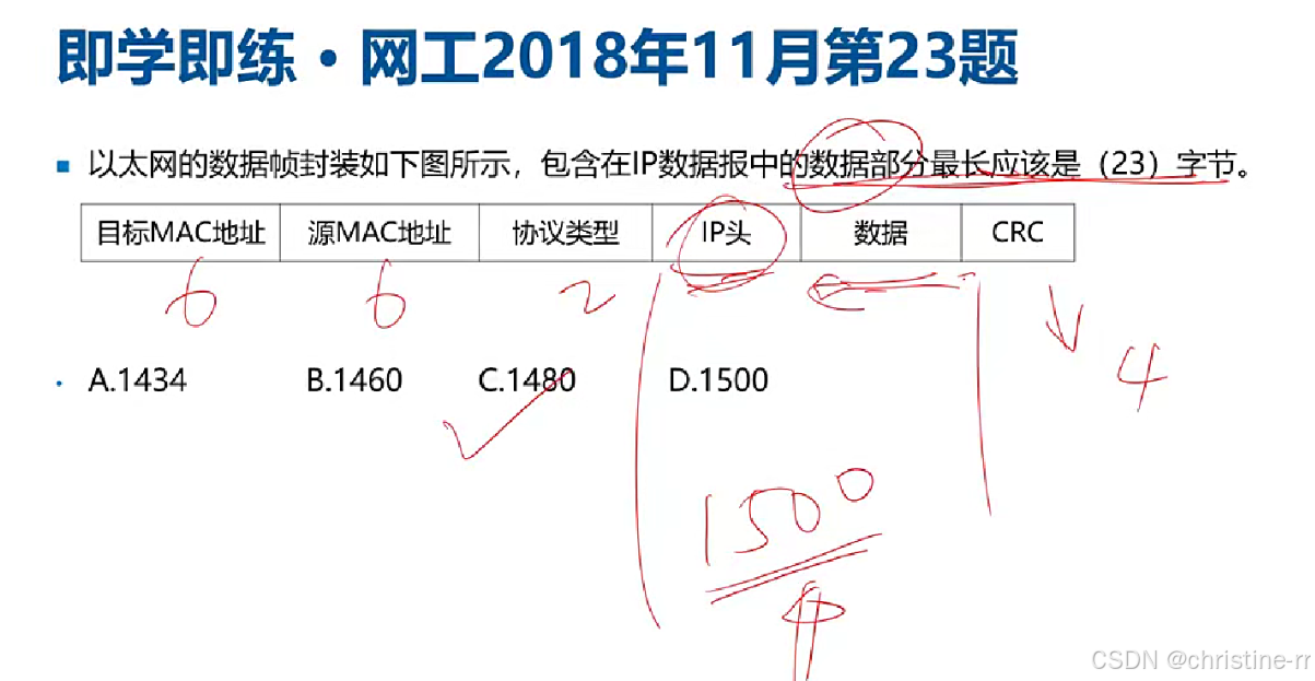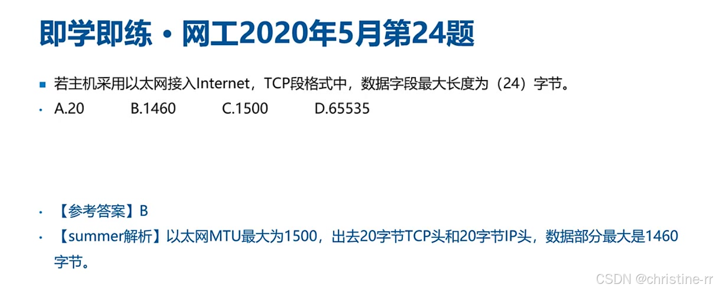 解题关键:以太网MTU 1500字节扣除IP头20字节