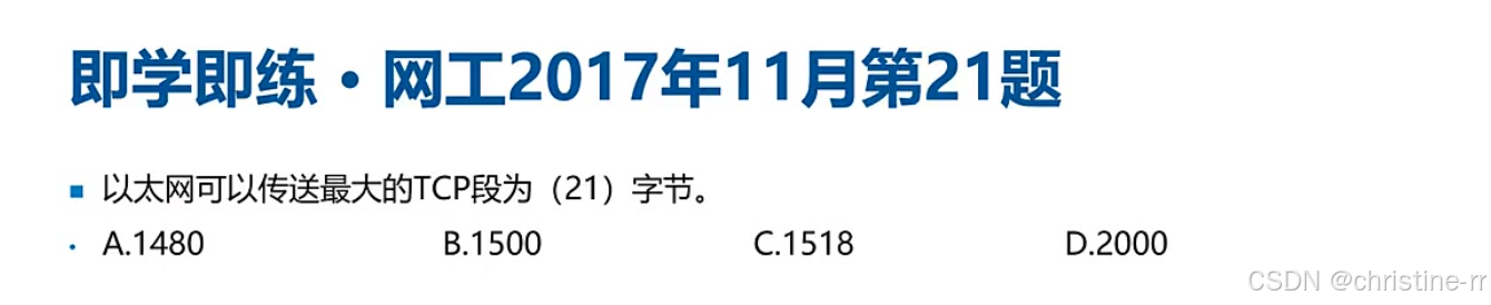 历年真题对比 | 2017年:TCP段最大=1480字节(1500-IP头); 2020年:TCP数据字段=1460字节(1500-IP头-TCP头); 2024年:UDP负载=65527字节 | 题干关键词辨析(“TCP段”vs“TCP数据字段”vs“UDP负载”) | ⭐⭐⭐⭐ |