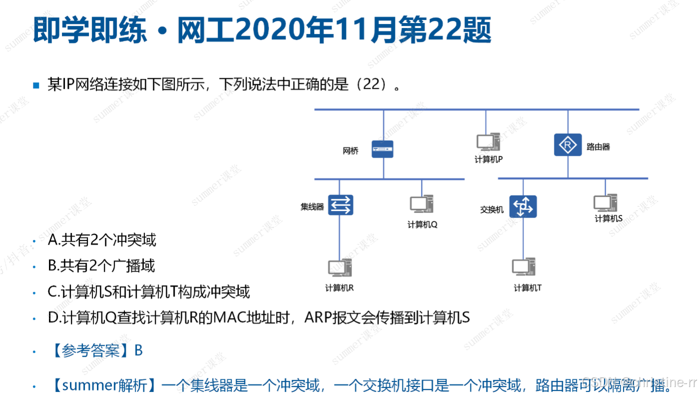 冲突域与广播域 | - 冲突域:集线器整体为1个,交换机每接口1个 - 广播域:1个VLAN=1个广播域,路由器每接口隔离广播域 | 易混淆:交换机未划分VLAN时默认所有接口在VLAN 1(1个广播域) | ⭐⭐⭐⭐ |