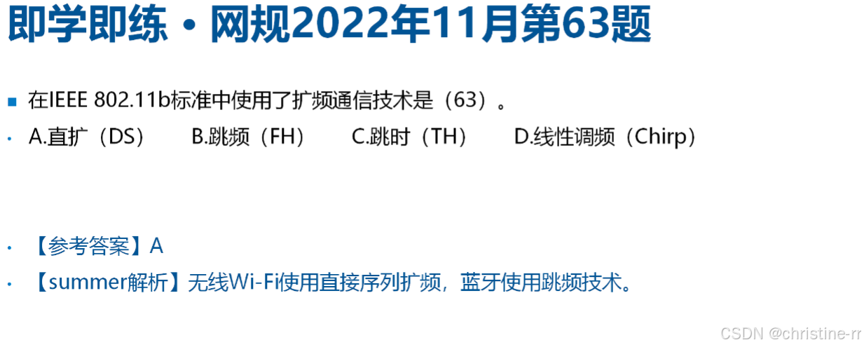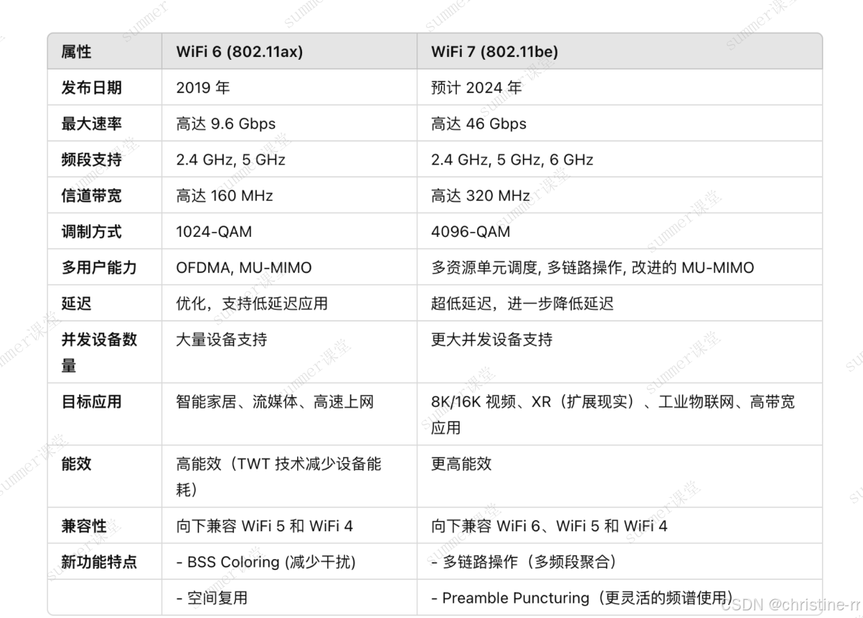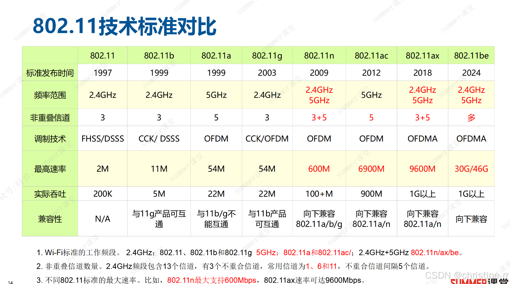 - 802.11be速率:教材30Gbps vs 标准46Gbps(考试出现">30G"即正确)
