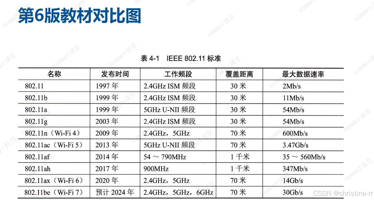 - 802.11ax速率:教材14Gbps vs 标准9.6Gbps(以教材为准)