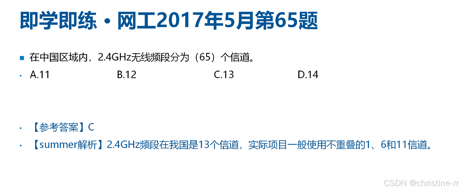 - 2.4GHz频段3个非重叠信道(1/6/11)