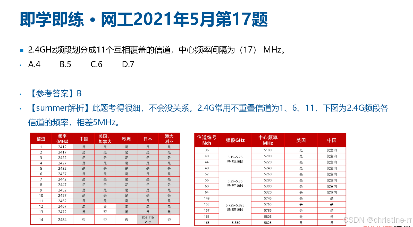 记忆技巧:2.4G对应5MHz,5G对应20MHz(4倍关系)