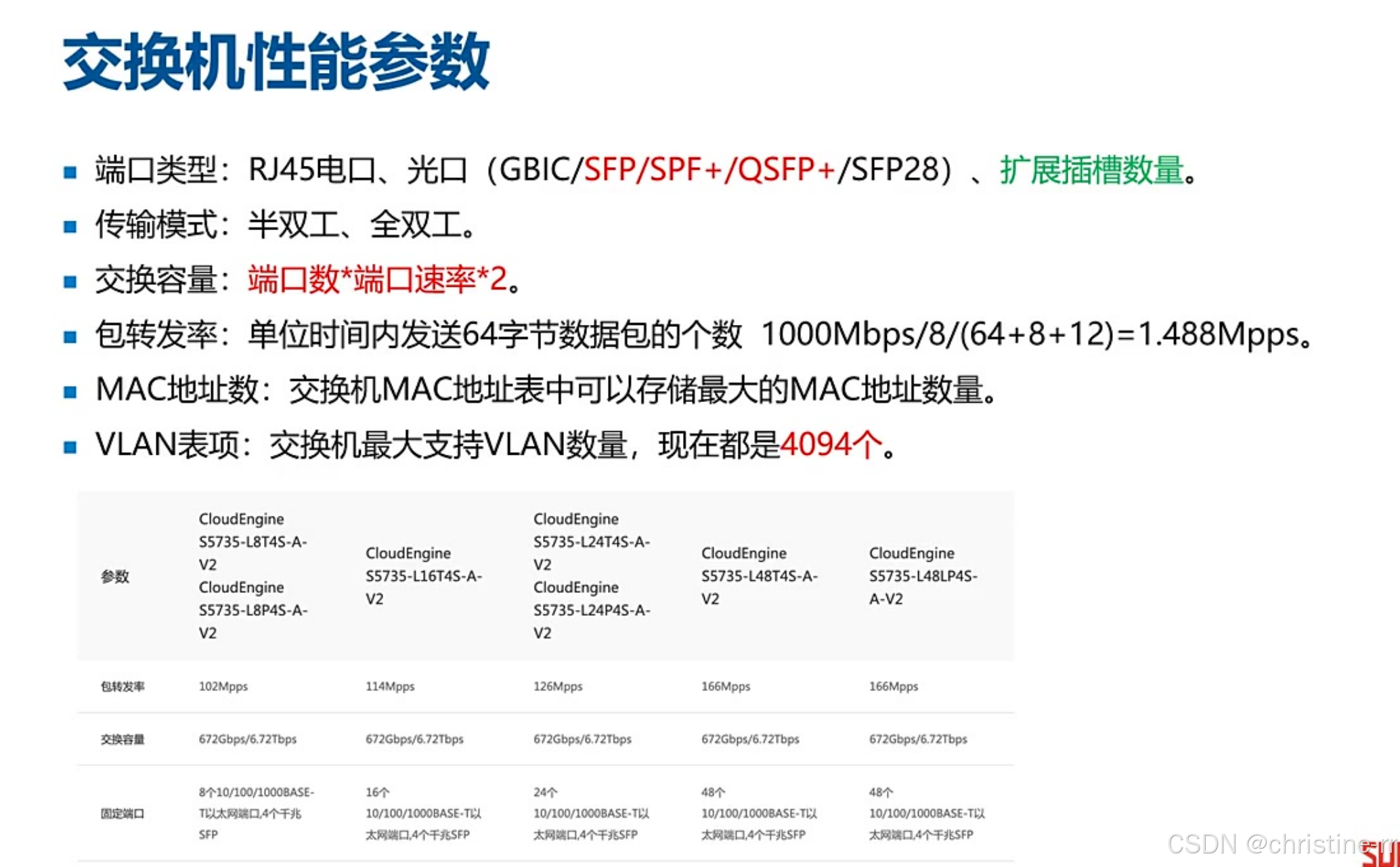 交换容量与包转发率 | 交换容量计算、包转发率指标 | 性能参数的理解与计算 | 中 |