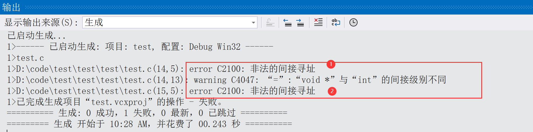 }用VS编译代码结果如下: