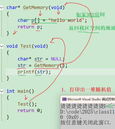 这段代码中存在着一个严重的悬空指针问题,会导致未定义行为。