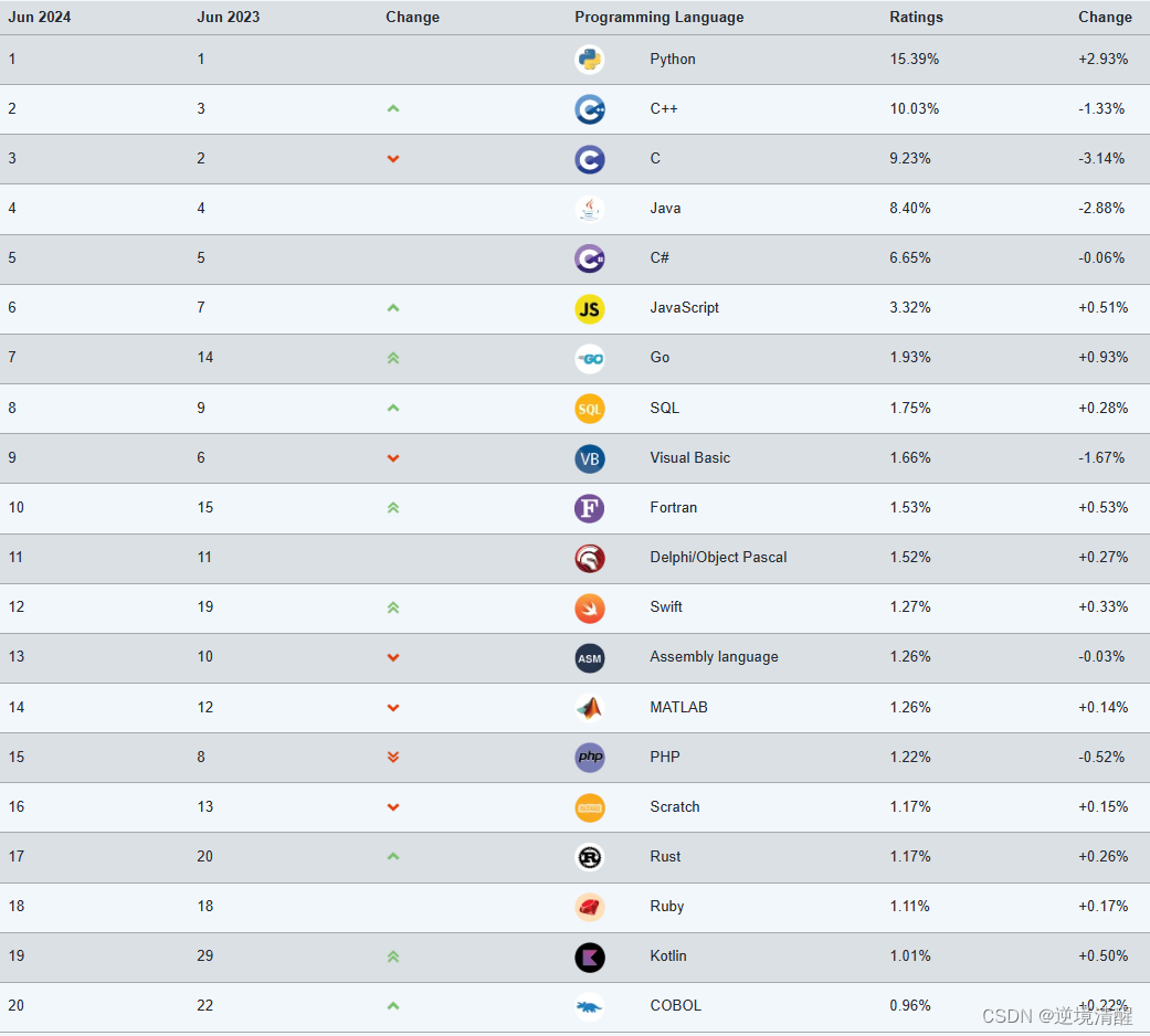 2024年6月TIOBE发布的编程语言排行榜