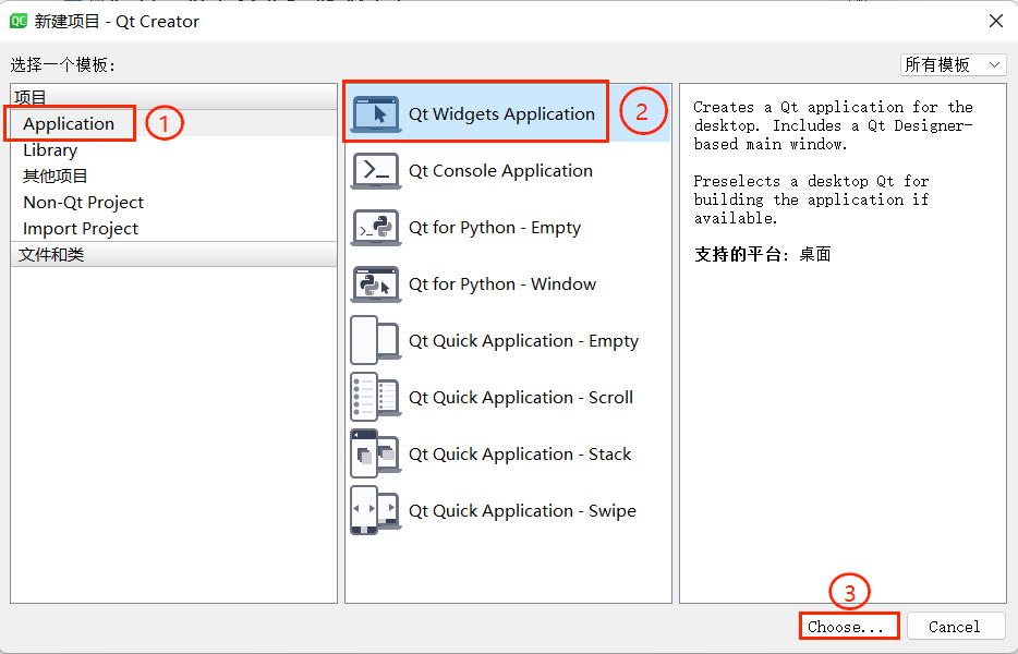 <QPushButton>,会提示 “undefined reference to QPushButton::QPushButton(...)”,点击错误信息可快速定位到对应的代码行。qDebug()打印的日志、程序异常提示等。例如,在代码中添加qDebug() << "程序启动成功";,运行后该窗口会显示对应的日志信息,方便开发者调试程序逻辑。print variable查看变量值),或查看调试器输出的信息,适合高级调试场景。新建项目是 Qt 开发的第一步,这里我们以创建 “Qt Widgets Application”(基于 Qt Widgets 组件的图形界面应用)为例,详细步骤如下:
