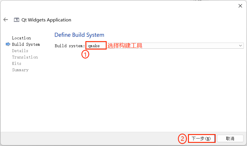 此处选择默认的 “qmake”,点击 “下一步(N)”。