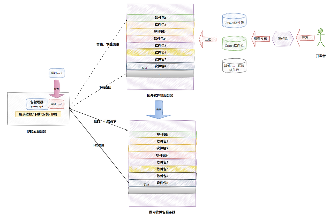Linux 系统安装软件的过程,本质上是 “获取软件包→解决依赖→部署文件→配置系统” 的闭环流程。在没有包管理器的时代,这个流程需要用户手动完成: