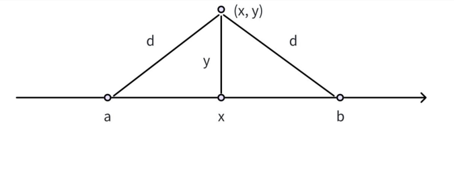 ,雷达要覆盖它,必须安装在 x 轴上的某个区间内。根据勾股定理,这个区间的左端点为