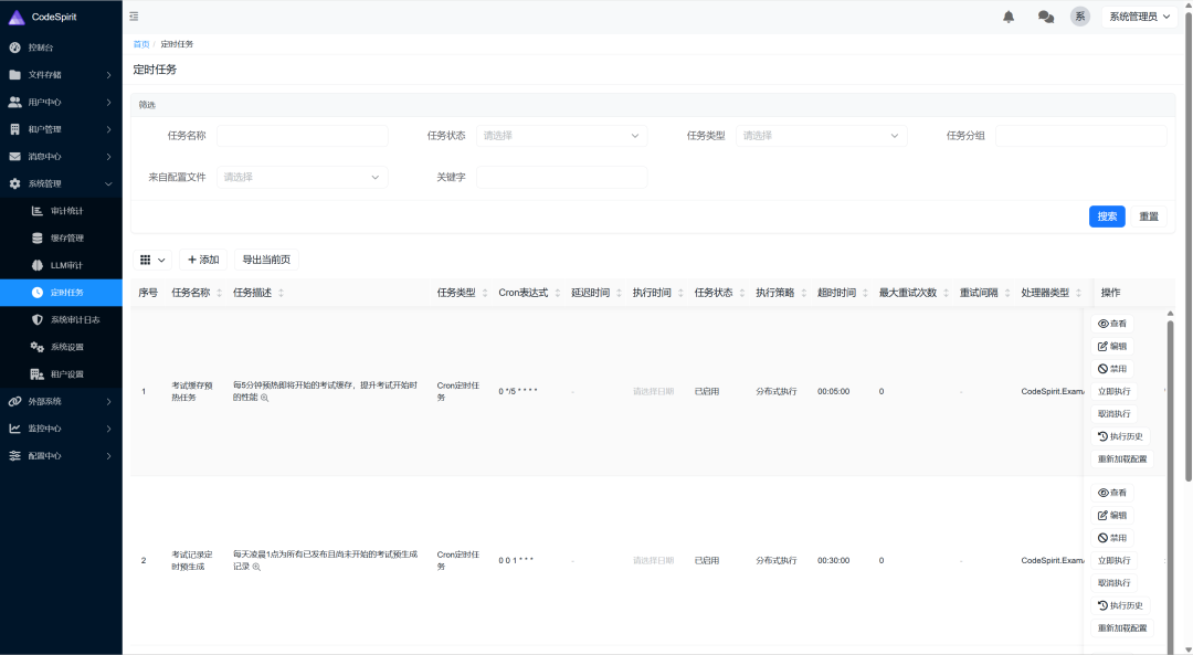 EnableExport = true, // 显示导出按钮RowActions 是一个 JSON 格式的字符串数组,配置每行的操作按钮: