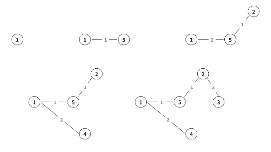 举个通俗的例子:把生成树想象成一个 “朋友圈”,起始点是你自己。每次都邀请当前和你关系最好(距离最近)的人加入朋友圈,然后通过这个人,看看他的朋友中有没有和你关系更近的,更新关系后再邀请下一个人,直到所有人都加入朋友圈。